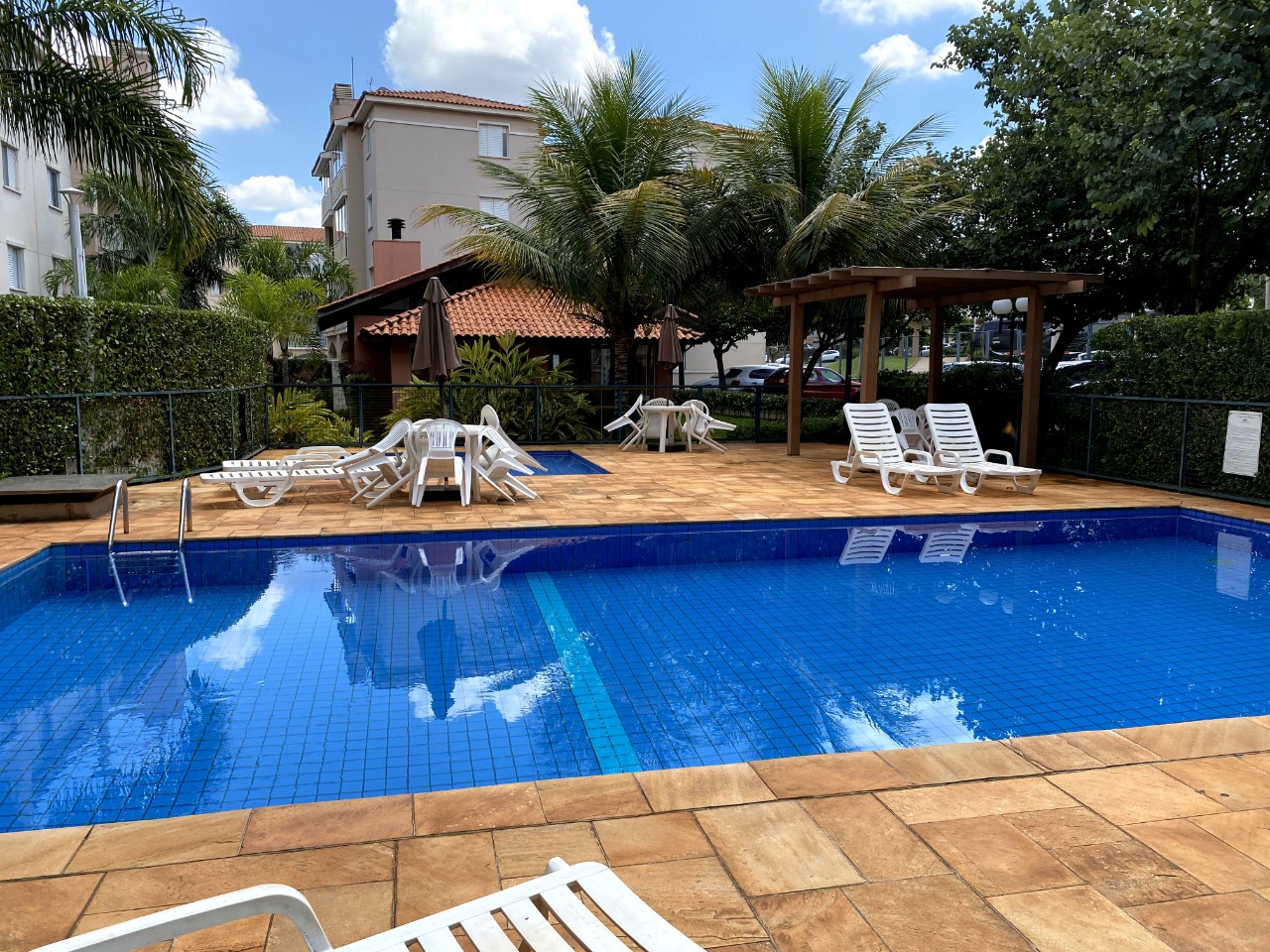 Piscinas adulto e infantil, Salão de festas, quiosque com churrasqueira, quadra