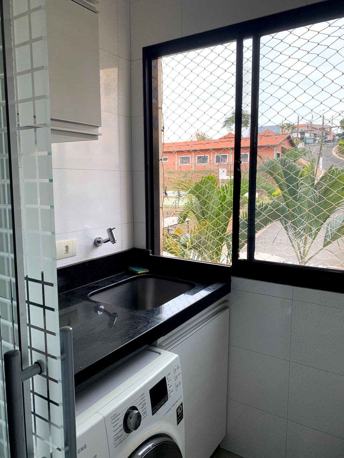01 área de serviço com armários e maquina de lavar;