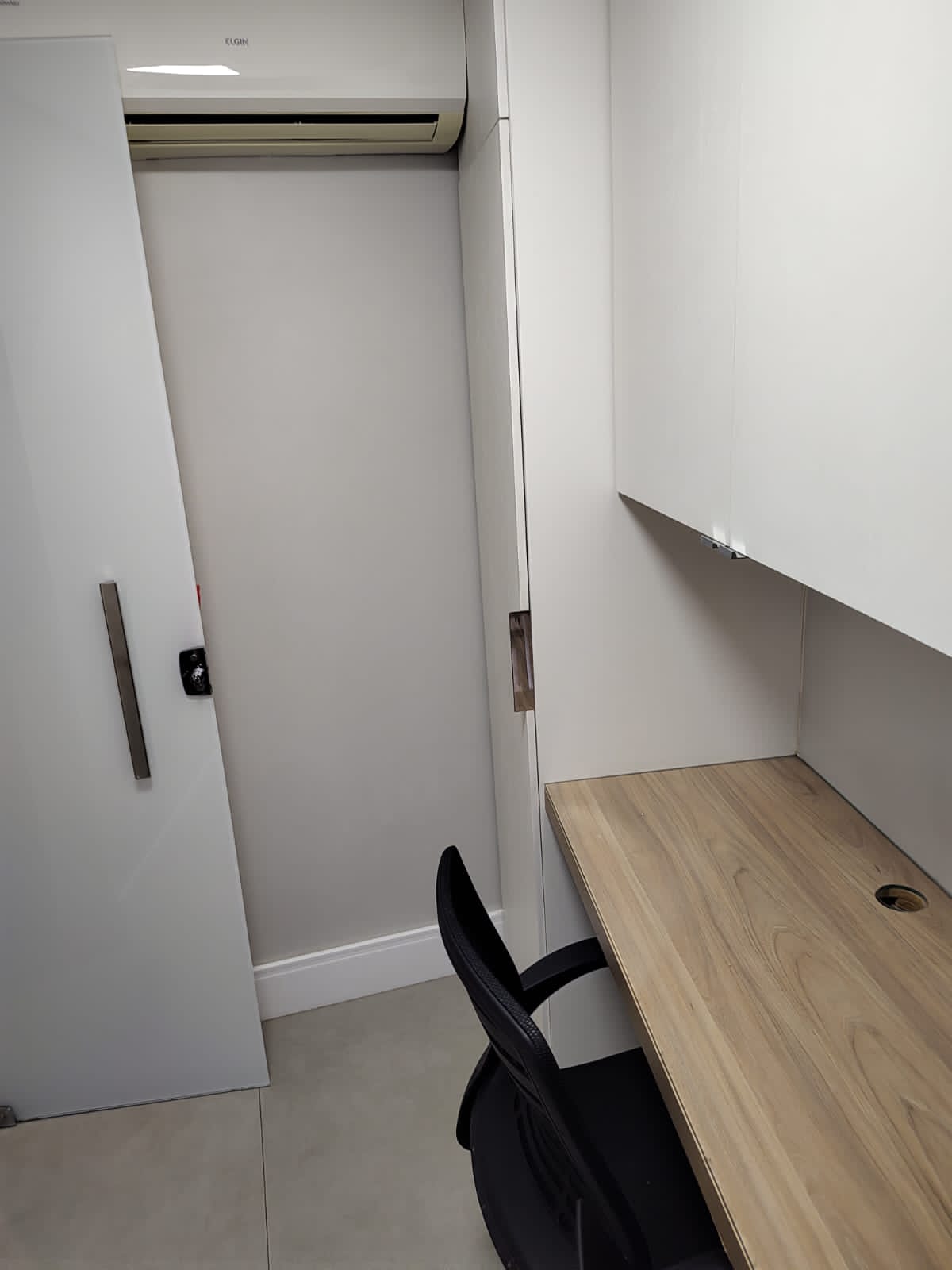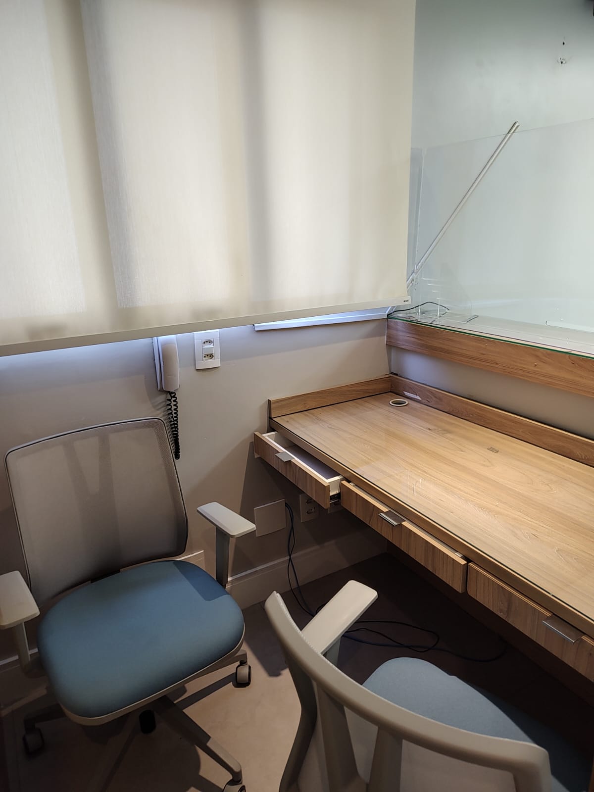 - sala de administração (com mesa, ar-condicionado, armário, cortina blecaute)