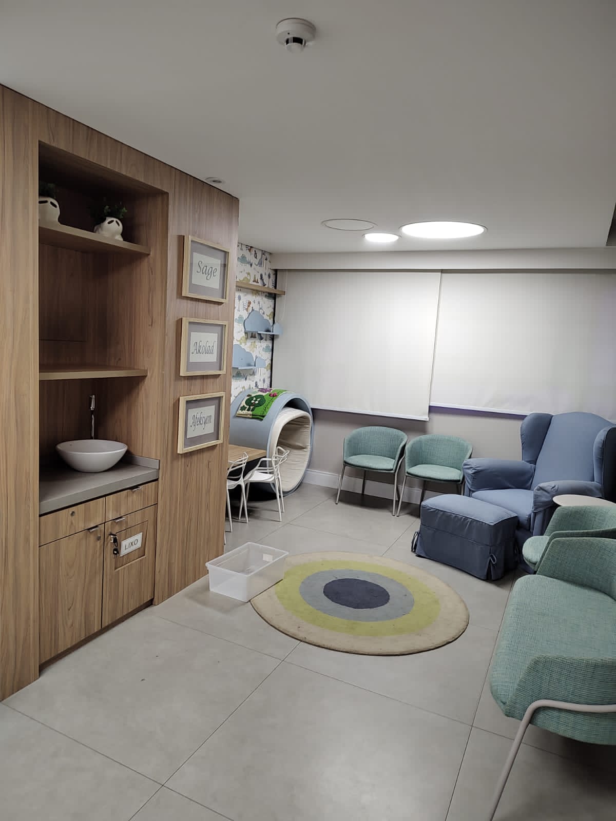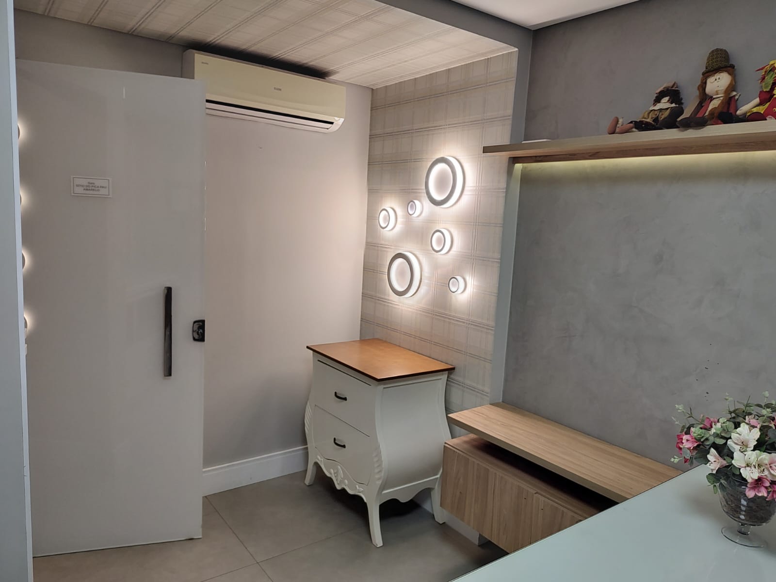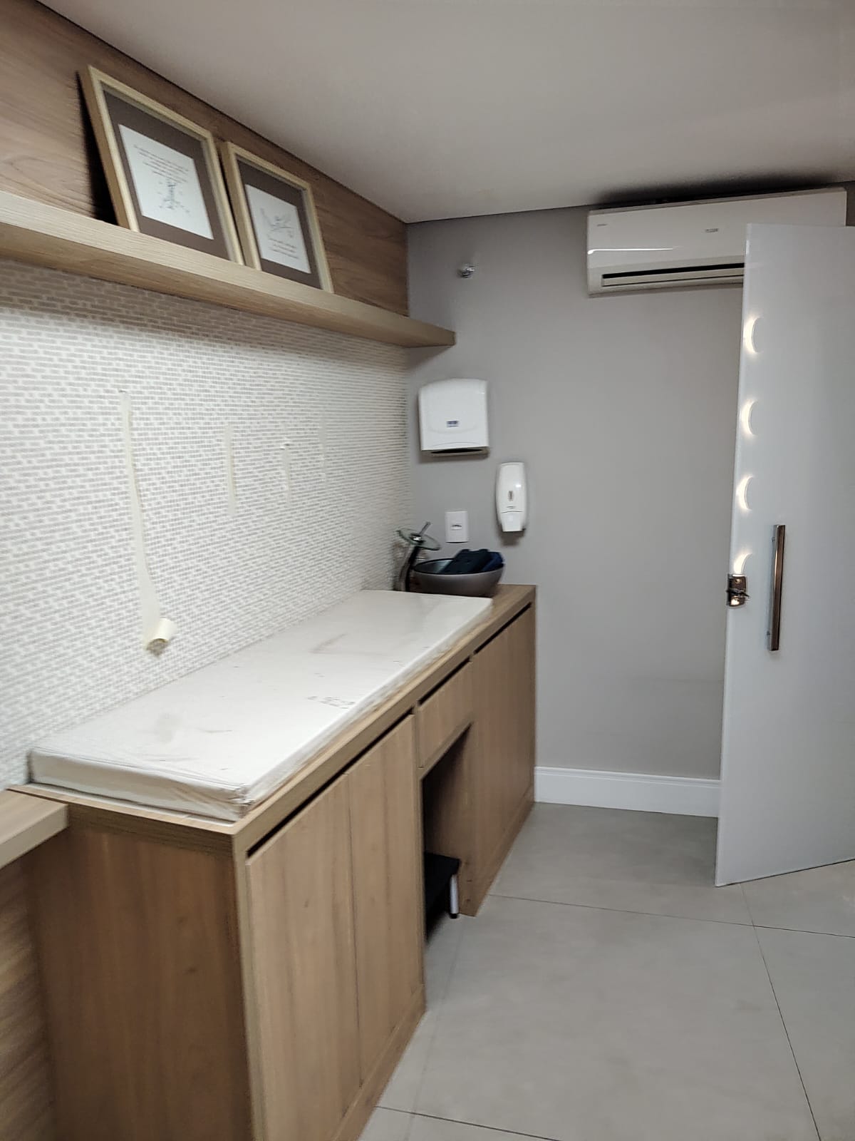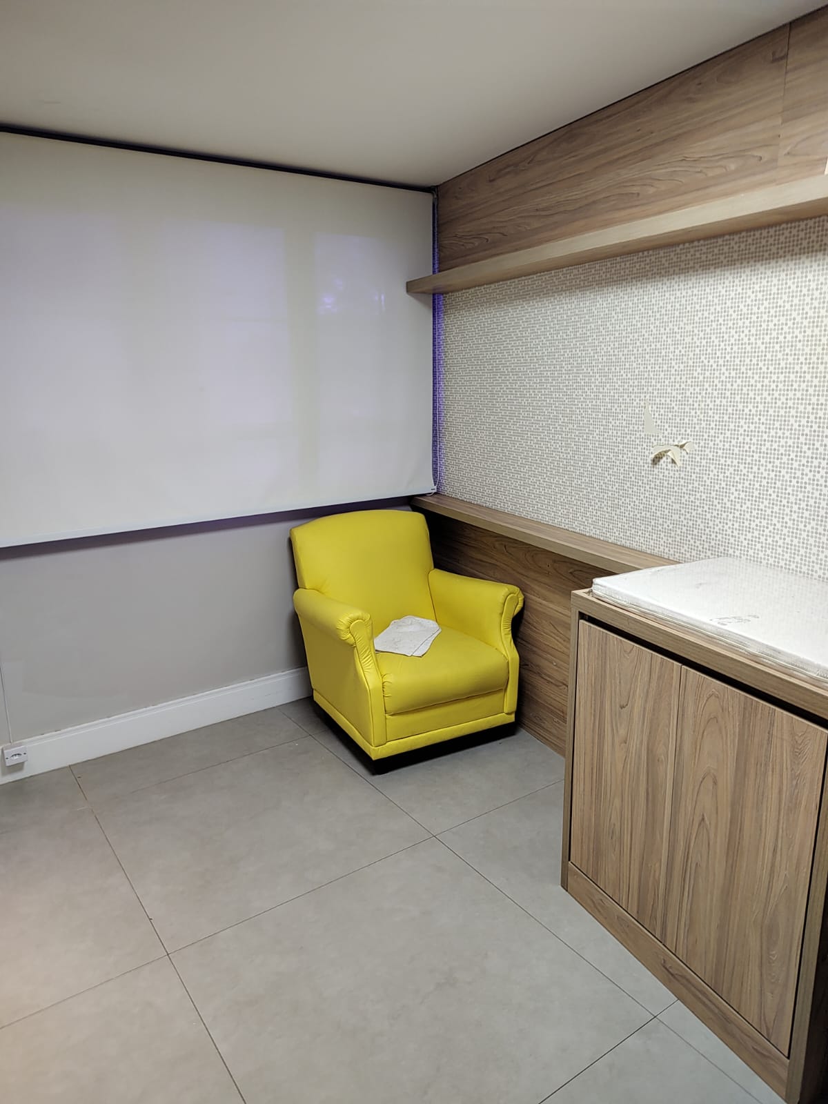- sala de atendimento (com maca, mesa, cortina blecaute, prateleiras, pia e ar-condicionado)